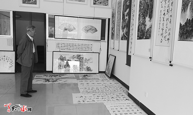 ????5月15日,市民在位于秦州區(qū)藉河北路的金華大廈展示中心參觀鳥語花香主題書畫展。今年以來,由天水市老齡委主辦,每月將在該展示中心展出部分市老年書畫研究會會員的書畫作品,這些會員平均年齡60多歲,年齡最大的80多歲,他們以國畫、書法、油畫等多種形式,詮釋著對生活的熱愛。(天水日報記者 陳少娟 何郁 攝)