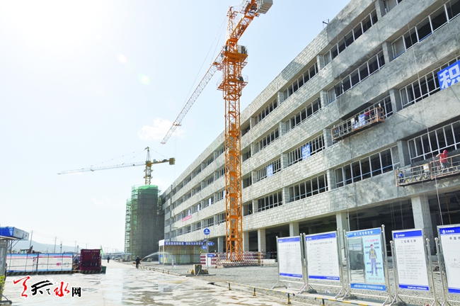 ????5月16日,記者在天水市一中麥積校區(qū)采訪時(shí)看到,偌大的校區(qū)內(nèi),教學(xué)樓、實(shí)驗(yàn)樓及綜合樓已初現(xiàn)雄姿,整個(gè)項(xiàng)目進(jìn)展順利。