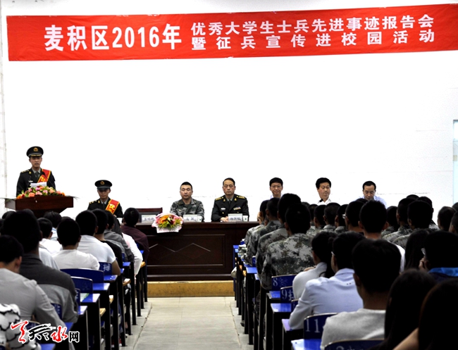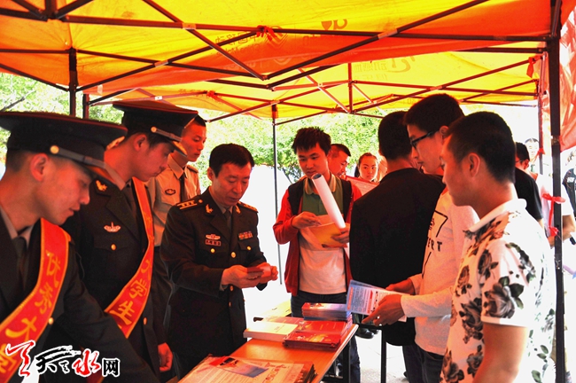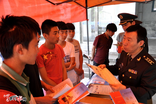 ????為做好今年夏秋季大學(xué)生征兵工作,連日來,麥積區(qū)人武部官兵走進(jìn)省林業(yè)職業(yè)技術(shù)學(xué)院、省工業(yè)職業(yè)技術(shù)學(xué)院宣傳征兵政策,鼓勵(lì)廣大適齡學(xué)生應(yīng)征入伍。在現(xiàn)場(chǎng)征兵宣傳咨詢點(diǎn),大學(xué)生踴躍詢問,參軍熱情高漲,并向?qū)W生發(fā)放《征兵宣傳冊(cè)》。今年天水市夏季征兵宣傳工作已全面展開。