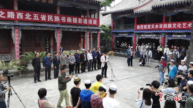 ????天天天水網(wǎng)20日10時訊【記者?劉曉亞?常亮】5月20日上午,由中共市委宣傳部、統(tǒng)戰(zhàn)部、天水市民族宗教事務委員會、天水市文化和旅游局、天水市文學藝術界聯(lián)合會聯(lián)合舉辦的“天水市絲綢之路西北五省民族書畫攝影邀請展”在天水市文化館開展。