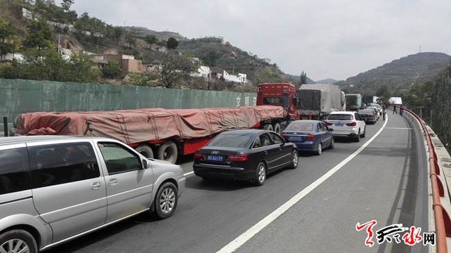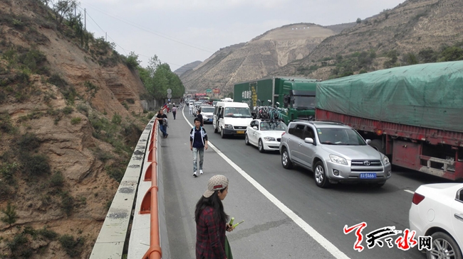 ????天天天水網20日15時訊 【記者 王雪梅 何慧娟】5月20日下午三點左右,在甘谷通往秦州方向的高速公路上,由于一車輛在秦州隧道內出現故障,道路暫停行駛,造成約兩公里長的堵車。截止記者發(fā)稿,該方向路段還在禁止通行中。
