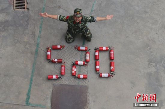 消防官兵在訓(xùn)練場(chǎng)擺出“千手觀音”造型。 王志文 攝????消防官兵在訓(xùn)練場(chǎng)擺出“千手觀音”造型。 王志文 攝