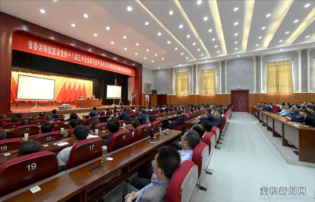 ????報(bào)告會(huì)由麥積區(qū)委書(shū)記張智明主持。天水市委講師團(tuán)團(tuán)長(zhǎng)郭黎平;麥積區(qū)委副書(shū)記、區(qū)長(zhǎng)成少平,區(qū)政協(xié)主席楊續(xù)祥,區(qū)委副書(shū)記吳健、唐進(jìn)軍,區(qū)委常委、政法委書(shū)記臧志軍,區(qū)委常委、宣傳部長(zhǎng)董珺,區(qū)委常委、副區(qū)長(zhǎng)王彥軍,區(qū)委常委、馬跑泉鎮(zhèn)黨委書(shū)記杜崢嶸等區(qū)四大組織在家領(lǐng)導(dǎo);區(qū)直部門(mén)領(lǐng)導(dǎo)班子成員、鄉(xiāng)鎮(zhèn)(街道辦事處)領(lǐng)導(dǎo)班子成員、黨建辦公室主任、人大專職副主席、紀(jì)檢專職副書(shū)記及部分村、社區(qū)黨支部書(shū)記550多人聆聽(tīng)了報(bào)告。