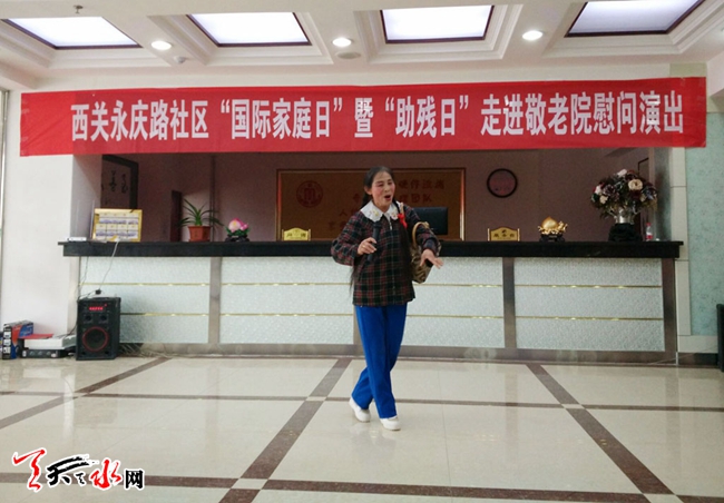 ????慰問(wèn)演出、關(guān)愛(ài)老人。 5月13日下午,永慶路社區(qū)開(kāi)展了走進(jìn)敬老院慰問(wèn)演出,為老人們帶去歡樂(lè)與笑聲,用自己的實(shí)際行動(dòng)關(guān)心、關(guān)愛(ài)老年人,豐富老人的生活。