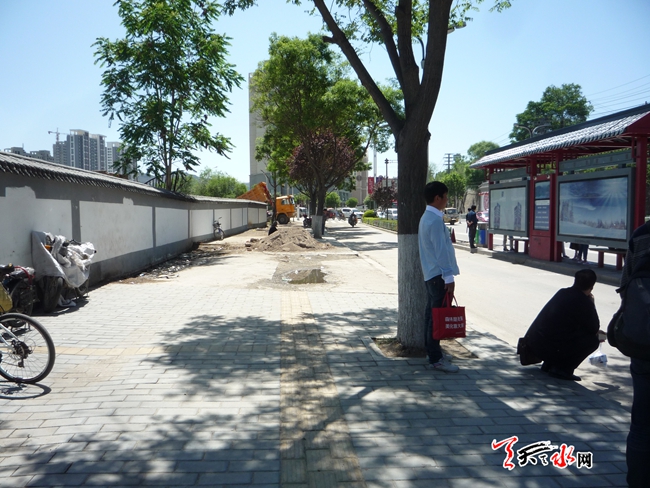 ????5月23日下午,記者來到“秦州西客站”,只見成紀(jì)大道南側(cè)的公交站房已經(jīng)被拆除,砌起了圍墻。在路邊,有乘客在此等候1路公交車。以往,駛來的1路公交車在此??亢螅緞?wù)保潔人員會對車內(nèi)車外的衛(wèi)生進行打掃,現(xiàn)在,公交站房被拆除,保潔人員已調(diào)配至他處。
