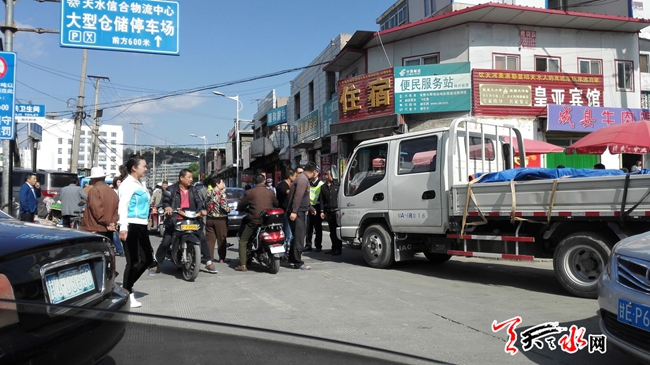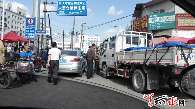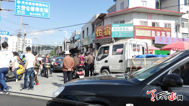 ????天天天水網24日12時訊 【記者 劉曉亞】5月24日上午,羅玉路東段,由于往來車輛較多,致使道路堵塞,一輛甘A牌照的微貨載著一車櫻桃欲西去,執(zhí)勤交警規(guī)勸司機暫停等候,司機不聽規(guī)勸,繼續(xù)向前移車輛,致便車前站立的交警不得不擊打車體,司機下車揮拳打向交警,在路人勸解下毆打未果,司機僵持10分鐘左右,見路著實難以通過,才悻悻地離開。