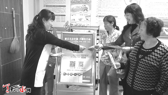 ????石馬坪街道辦石馬坪社區(qū)日前開展了“建設(shè)法治中國 巾幗在行動”的主題活動。此次活動累計發(fā)放婦女維權(quán)法律知識包300份,婦女維權(quán)機構(gòu)信息卡500張,為100多名婦女同胞進行了免費的法律咨詢服務(wù)。(雷萌 攝)