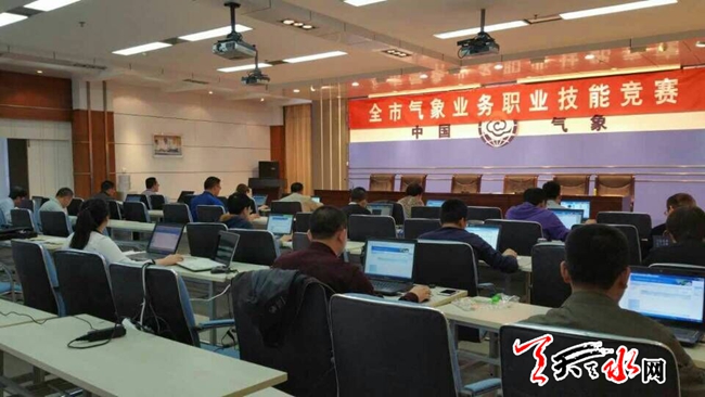 ????天天天水網(wǎng)27日11時訊【記者 張文都 】 5月27日,天水市氣象業(yè)務職業(yè)技能競賽進入激烈的決賽角逐中。來自市氣象臺、兩區(qū)五縣等系統(tǒng)的10個代表隊37名選手爭鋒相對,你追我趕,激烈搶答,現(xiàn)場火藥味十足。