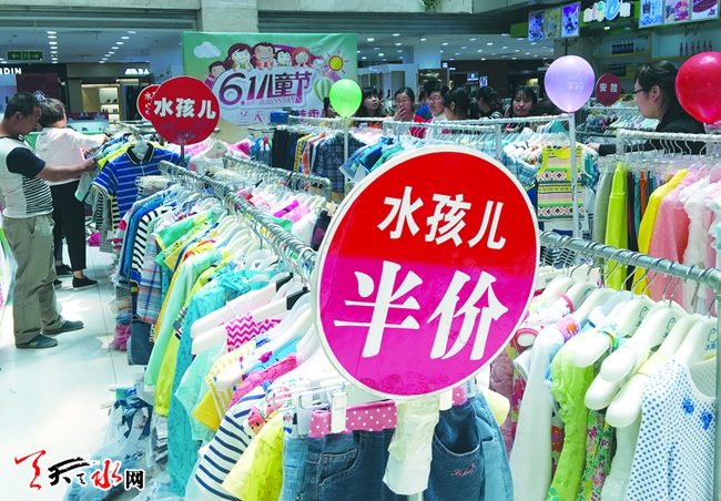 ????5月24日,在秦州區(qū)某商場(chǎng),一品牌兒童服裝“六一”促銷的廣告格外引人注目。