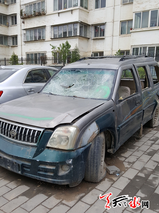 ????天天天水網(wǎng)27日14時訊【記者 常亮】5月27日中午,記者在秦州區(qū)羅玉路西段看到,位于羅玉路西段的棗園小區(qū)門前的人行道上 停放著一輛破舊不堪的長城牌小汽車。在現(xiàn)場記 者看到,小汽車的前后輪胎已經(jīng)泄了氣,前擋風(fēng) 玻璃破碎,車門上的幾處窗戶均沒有玻璃。