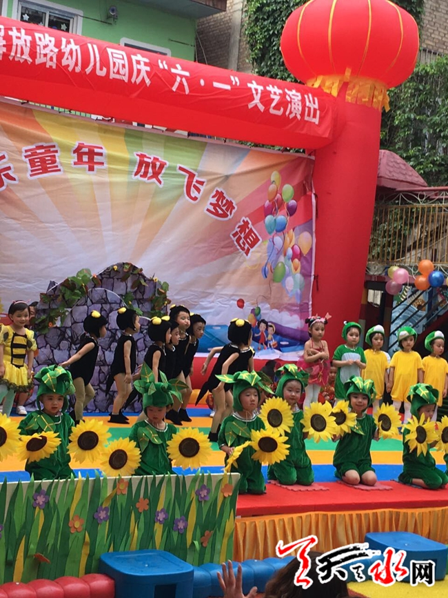 ????天天天水網(wǎng)27日15時(shí)訊 【記者 張小龍】為展幼兒風(fēng)采,享快樂成長(zhǎng),秦州區(qū)解放路幼兒園在校園內(nèi)舉行了“快樂童年,放飛夢(mèng)想”慶祝六一文藝匯演。