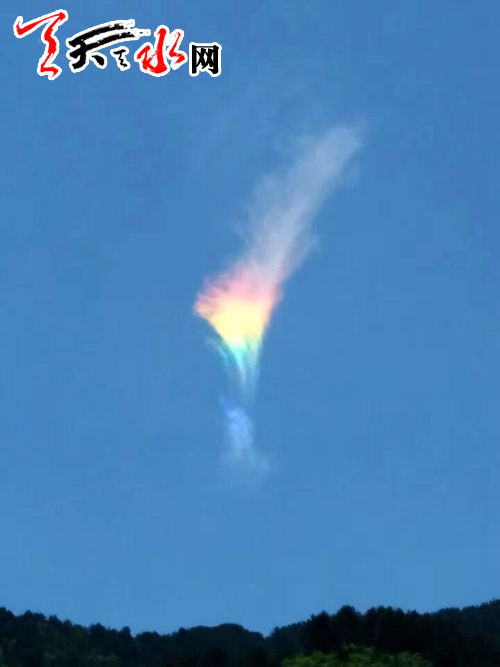 天天天水網(wǎng)5月29日14時訊【記者何慧娟】5月29日中午時分,在我市秦州區(qū)娘娘壩鎮(zhèn)李子園村上空,晴朗的天空中出現(xiàn)了五色多彩云。