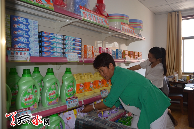 ????6月16日,秦州區(qū)環(huán)西社區(qū)“慈善超市”正式營業(yè),工作人員正在整理貨架上的商品。據了解,該“慈善超市”救助的對象主要是轄區(qū)內的困難群體,主要包括低保戶、殘疾人、70周歲以上的老年人等。(天水日報記者 呂薇 邵蘭霞 攝)