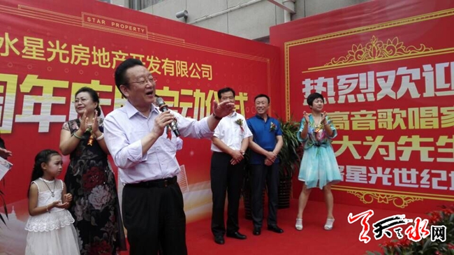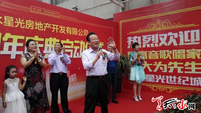 ????天天天水網(wǎng)24日12時訊【記者 張文都?蔚軍平】6月24日,著名男高音歌唱家蔣大為先生一路風(fēng)塵來到秦州區(qū)暖和灣的星光世紀城小區(qū),參加天水星光房地產(chǎn)開發(fā)有限公司10周年慶典啟動儀式。