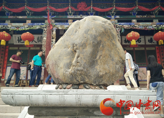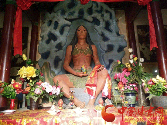 ????媒體行來到秦安隴城鎮(zhèn)參觀的第一站便是女媧祠。女媧祠內(nèi)建筑古樸端莊,進(jìn)入女媧祠一眼就能看到媧皇宮前高高供起的五彩石頭,相傳這是女媧補(bǔ)天時(shí)剩下的五彩石。在石頭上能看到兩個(gè)女人的紋樣,石頭背后還有灼燒的痕跡。這塊傳奇的石頭讓參觀的記者忍不住伸手觸摸,還有記者好奇數(shù)了數(shù)石頭上到底有幾種顏色。繞過石頭就是大殿,大殿內(nèi)的女媧塑像披著頭發(fā),盤腿而坐,面容慈祥,目視遠(yuǎn)方,左手托著補(bǔ)天的五彩石,右手上掛著一條紅綾。女媧塑像雙目炯炯有神,與眾不同的是她的瞳孔居中,這暗示了她人首蛇身、龍的化身的身份。