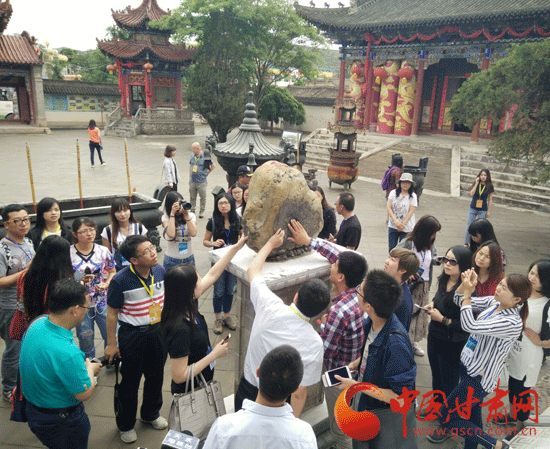 ????記者們觸摸補(bǔ)天石