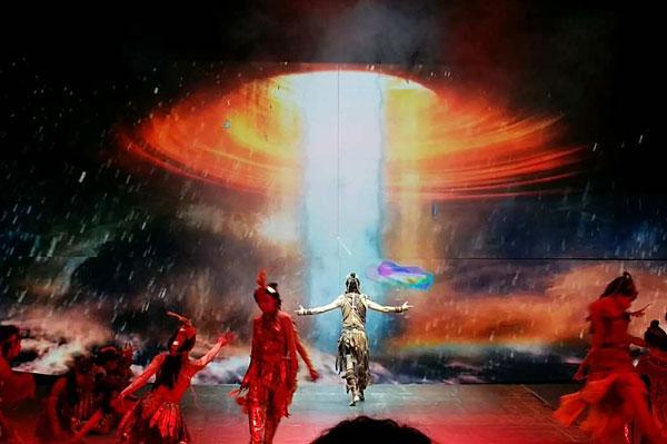 ????整個(gè)演出氣勢(shì)磅礴,觀看者無(wú)比震撼感動(dòng),不時(shí)爆發(fā)出陣陣掌聲,我亦被這驚天地、泣鬼神的故事深深感染,直到走出劇場(chǎng),耳邊似乎還飄來(lái)古樂秦腔,使人不禁浮想聯(lián)翩,仿佛又到遠(yuǎn)古之地,伏羲畫卦之時(shí)……至此,人生的回味中,又多了幾分敬畏與了然,去揮筆凝素娟,流年醉墨痕。