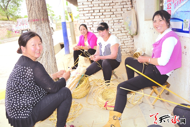 ????6月20日,記者在甘谷縣大石鎮(zhèn)看到,無論是在樹蔭下還是商店前,到處都是編草編的婦女,她們?nèi)宄扇旱刈谝黄鹪诶页5耐瑫r,幾根麥稈熟練地在手中飛舞。據(jù)了解,甘谷縣大石鎮(zhèn)是草編之鄉(xiāng),草編在豐富農(nóng)民農(nóng)閑生活的同時也增加了他們的收入。(天水日報記者 呂薇 何慧娟 攝)