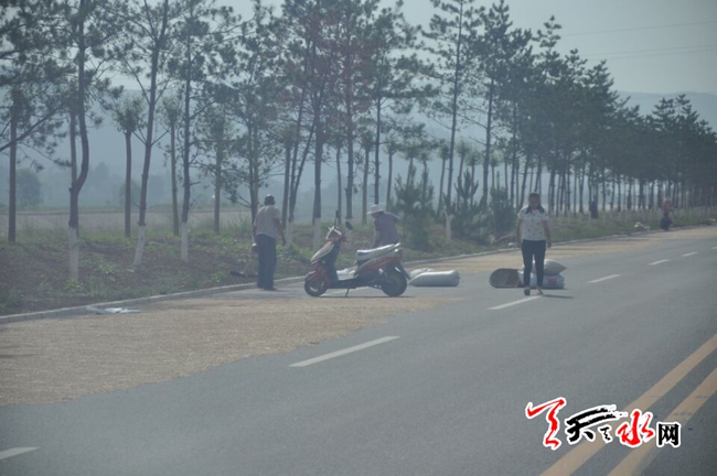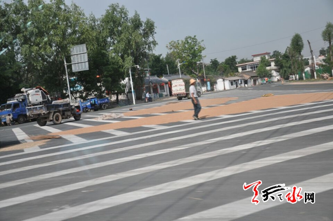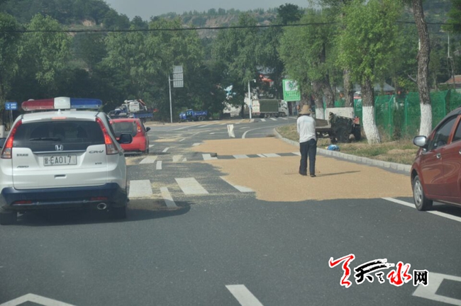 ????天天天水網(wǎng)27日16時訊 【記者 劉曉亞】6月27日,途經(jīng)清水縣城,在縣城附近的公路上,看到一些農(nóng)民把打碾的小麥攤曬在路兩邊,硬生生把車來車往的公路變成曬麥場,曬糧人我行我素,全然不顧近在咫尺的危險,致使來往車輛不得不減速而行,天天天上網(wǎng)提醒相關部門,對這種違反交規(guī)的現(xiàn)象應及早予以治理,莫等禍患起!