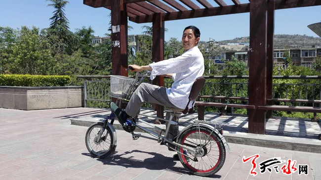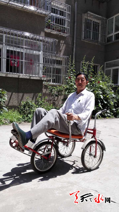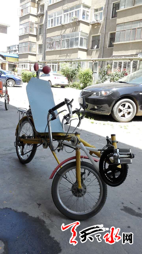 ????天天天水網(wǎng)30日15時訊【記者 張超】自行車對于我們來說都不陌生,坐在車座上雙手扶著車把,用力向前蹬就行了,但在我市麥積區(qū)的二馬路上,經(jīng)常能見到一輛怪模怪樣的自行車,不但車車身造型奇特,而且騎行方式也和普通自行車不同,因為它是一輛“躺著騎”的自行車,是不是覺得有點稀奇?