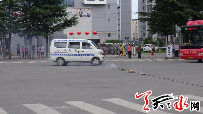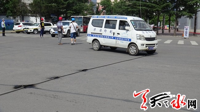 ????天天天水網(wǎng)30日20時訊【記者蔚軍平】6月30日下午3時許,在秦州區(qū)迎賓路與三星路相接的十字路口,一條東西方向延伸的供電線路突然掉落在路面上冒煙起火。