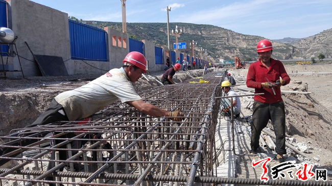 ????天天天水網(wǎng)4日17時訊 【記者 姬旺芳】7月4日,工人正在成紀(jì)新城地下凈水工程現(xiàn)場作業(yè)。該工程用地51.44畝,項目總投資4.84億元,項目設(shè)計為全地下式建設(shè),地表為開放式城市公園。該項目于2015年10月開工建設(shè),至目前基坑支護(hù)樁施工已完成,冠梁已接近尾聲,完成投資5000多萬元,預(yù)計2017年5月完成土建工程,2017年10月竣工。