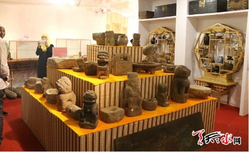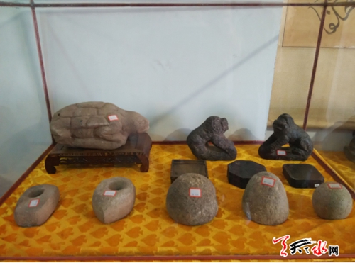 ????天天天水網(wǎng)5日14時(shí)訊【記者?王雪梅】7月5日,在張家川縣龍山鎮(zhèn)蘆塬村建成石器陳列館里,參觀者正在進(jìn)行書畫交流。據(jù)了解,陳列館藏品種類繁多,有石器、陶器、木器、書畫等參展器物1000余件組,為張家川縣做好文化遺產(chǎn)歷史再現(xiàn)工程起到引領(lǐng)示范作用。