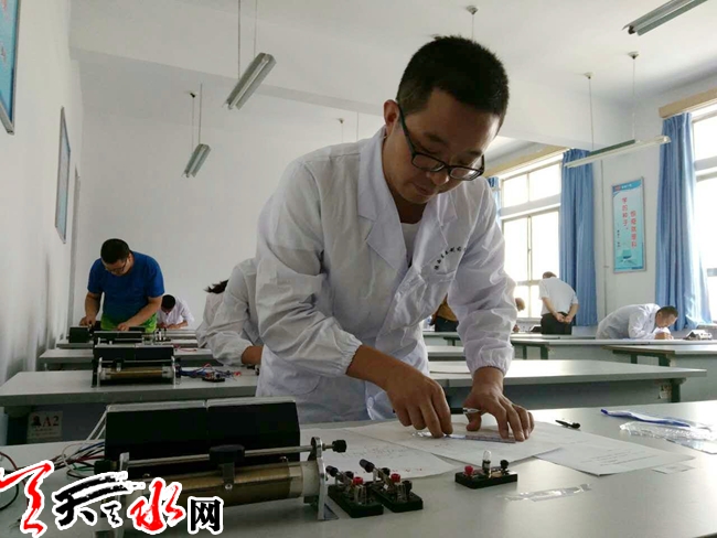 ????天天天水網(wǎng)10日20訊【記者蔚軍平】7月10日上午,天水市初中理科教師實驗技能競賽(復(fù)賽)活動在市一中舉行。來自我市兩區(qū)五縣及市逸夫?qū)嶒炛袑W(xué)的66名物理、化學(xué)、生物學(xué)科教師及實驗教師參加競賽。