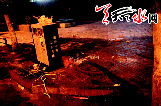 炎炎夏季,啤酒攤、街邊燒烤攤成為不少市民傍晚納涼和朋友小聚的最佳場所,但在和朋友、家人小聚的歡樂過后,由于商家的經(jīng)營陋習(xí)和市民的不文明行為,造成城市街邊垃圾遍地,這樣的景象不僅弄臟了城市的“臉”,也給環(huán)衛(wèi)工人增添了額外的工作負(fù)擔(dān)。連日來,記者晚上在秦州區(qū)市體校、玉泉觀、石馬坪三處夜市攤點進(jìn)行了現(xiàn)場調(diào)查,用鏡頭記錄了夜市垃圾大量存在的不雅事實。