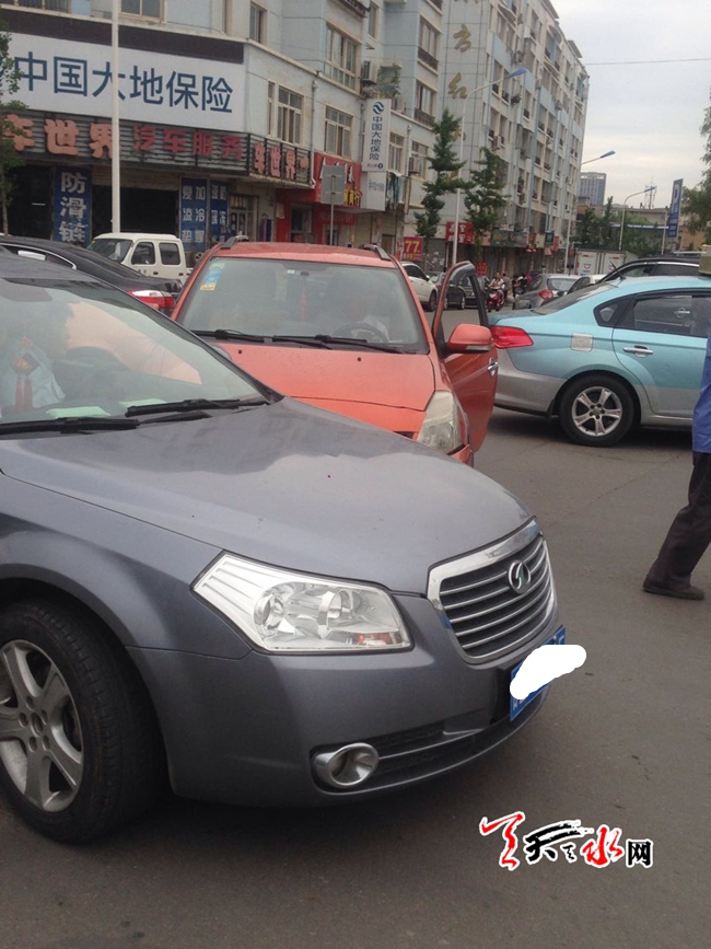 天天天水網(wǎng)12日16時(shí)秦州訊【記者張超】7月12日,藉河北路和羅玉路的交會(huì)處發(fā)生了一起交通事故,一輛從東方紅小區(qū)駛出的桔色轎車撞上了自羅玉路向前行駛的灰色轎車,事故并不嚴(yán)重,只是桔色轎車撞上了灰色轎車的車門,造成了輕微的損傷,并沒有人員受傷,但在等待交警前來處理的過程中,兩車司機(jī)不停的理論到底是誰的責(zé)任,車輛停在路中央對(duì)其他通行的車輛造成了較大的影響,一時(shí)間馬路上喇叭催促聲響成一片。