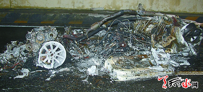 據(jù)介紹,當日21時許,一輛小轎車沿天定高速公路下行線行駛至甘谷大像山隧道內(nèi)突然起火燃燒,瞬間,整個隧道內(nèi)煙霧彌漫,能見度非常低,火災致使該路段交通中斷。接到報警后,消防官兵、高速救援隊員緊急趕赴現(xiàn)場處置,經(jīng)過奮力撲救大火被撲滅,所幸未造成人員傷亡,但小轎被燒得面目全非,只剩下骨架。18日凌晨1時許,隧道內(nèi)煙霧基本排完,火災現(xiàn)場清理完畢后交通隨之恢復正常。