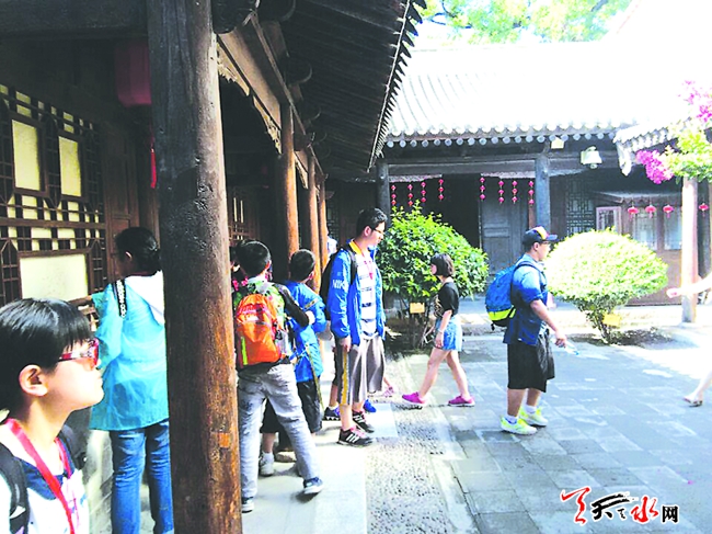 7月17日,在我市南宅子門口,26名來自青島的小朋友剛剛結(jié)束3天的夏令營活動,戀戀不舍地踏上了歸程。上小學五年級的蔣思成告訴記者,15日至17日三天時間里,他們學習了歷史悠久的伏羲文化,嘗到了多種多樣的天水小吃,參與妙趣橫生的鄉(xiāng)村游戲和農(nóng)耕活動等。滾鐵環(huán)、打陀螺、跳格子、丟手絹、老鷹抓雞等經(jīng)典游戲,讓參加夏令營的家長與小朋友玩成了一片。