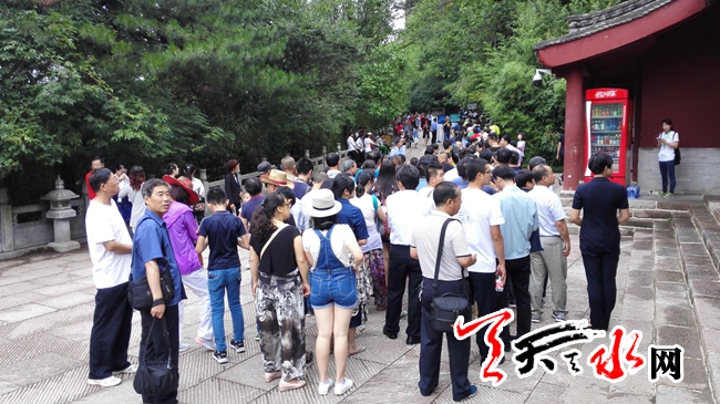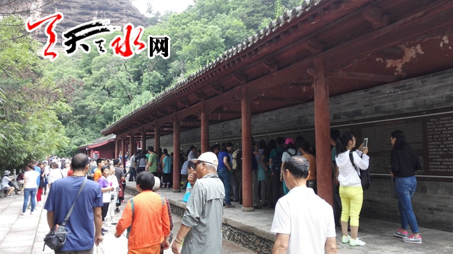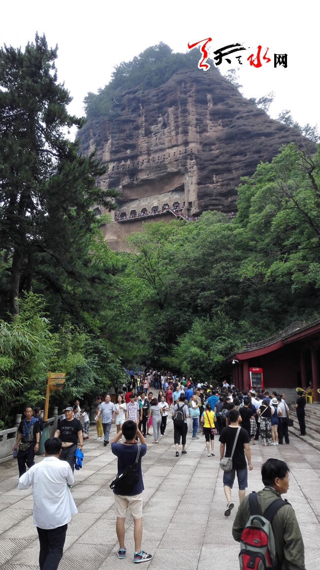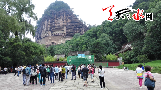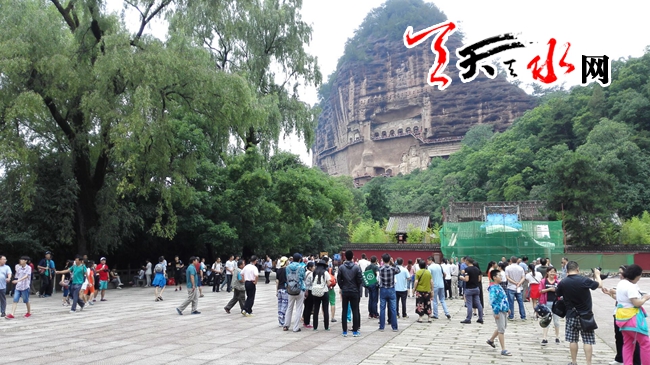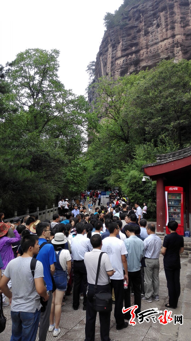 ????天天天水網(wǎng)7月23日訊【記者 李旺旺】7月23日,麥積山景區(qū)游人爆滿(mǎn),記者看到,游客都聚集在麥積山山底入口處排隊(duì)等候。