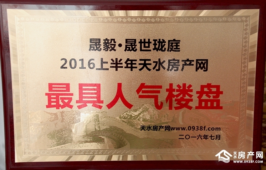 (晟世瓏庭被評為天水房產(chǎn)網(wǎng)2016上半年“最具人氣樓盤”)