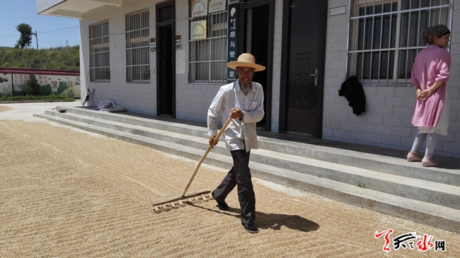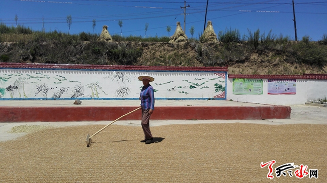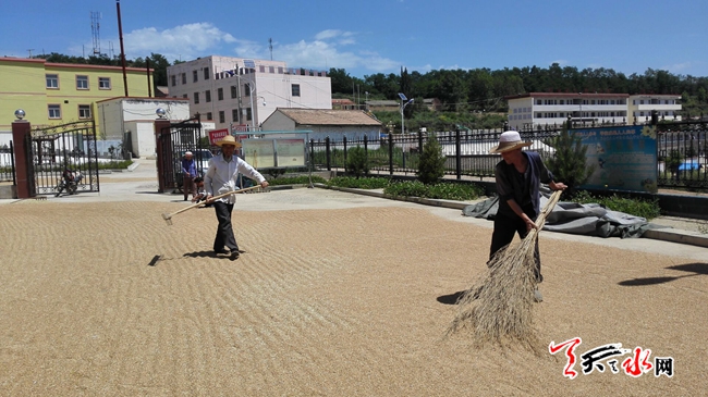 天天天水網(wǎng)28日14時(shí)訊【記者?王雪梅】7月28日12時(shí)許,在張家川縣平安鄉(xiāng)磨馬村,村民們正在晾曬麥子。村民馬建峰對(duì)記者說(shuō),今年的麥子顆粒飽滿(mǎn)、谷重,一畝地能打五六百斤,是個(gè)豐收年。