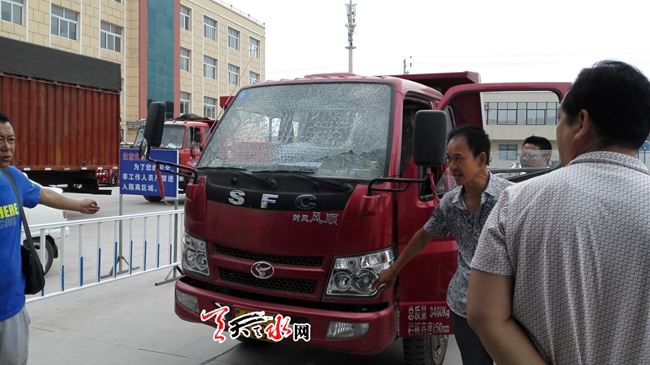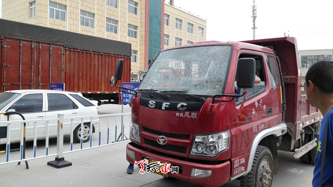 天天天水網(wǎng)10日9時(shí)訊【記者蘇中豹】當(dāng)日上午,在我市某一汽車檢測(cè)機(jī)構(gòu)現(xiàn)場(chǎng),一輛卡車前擋玻璃被前面受檢車輛輪胎夾溝摔出的石子擊碎。