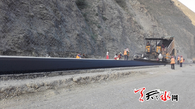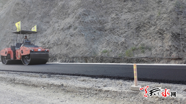 天天天水網(wǎng)11日11時訊【記者 王雪梅】8月11日上午,記者在麥甘公路改建工程現(xiàn)場看到,工人們正在給路面鋪油。據(jù)了解,該項目采用城市主干道一級公路技術(shù)標準建設(shè),是天水市第一個交通融資建設(shè)項目,路線全長75.30公里,預(yù)計年底前竣工通車。
