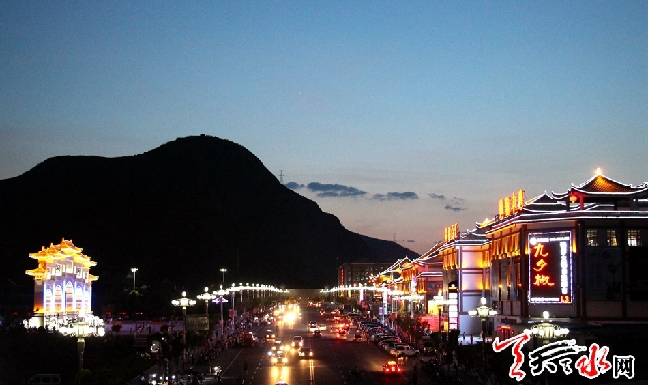 夜幕降臨,華燈初上,甘谷縣大像山仿古文化街車如海、人如潮,持續(xù)高溫天氣讓位于大像山腳下的大像山公園、仿古文化街成了市民消夏納涼的好去處。近年來,甘谷縣以4A級景區(qū)大像山為依托,規(guī)劃建設(shè)總占地面積約652畝,總投資約11.23億元的大像山文化產(chǎn)業(yè)片區(qū),現(xiàn)已建成游客服務(wù)中心、大像山仿古文化街、大像山文化主題公園等六大板塊,該區(qū)域已成為具有甘谷特色的旅游休閑功能區(qū)。(天水日報記者 李小哲 攝)