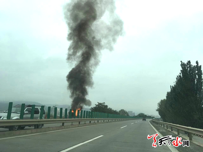 天天天水網(wǎng)21日9時(shí)訊 9月21日早上9點(diǎn)左右,秦麥公路麥積往秦州方向一輛小車發(fā)生自燃,駕駛室已被燒毀,目前,傷亡情況還未知。