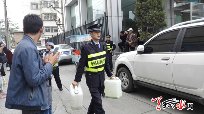天天天水網(wǎng)訊【記者 劉曉亞】9月22日下午,秦州區(qū)綜合執(zhí)法局東關(guān)中隊(duì)對(duì)轄區(qū)內(nèi)的游擊攤點(diǎn),尤其是針對(duì)學(xué)生兜售“三無(wú)”飲料和食品的游擊攤點(diǎn)進(jìn)行了清理取締,有效的凈化了校園周邊環(huán)境,為孩子們構(gòu)筑起了一道食品安全屏障。