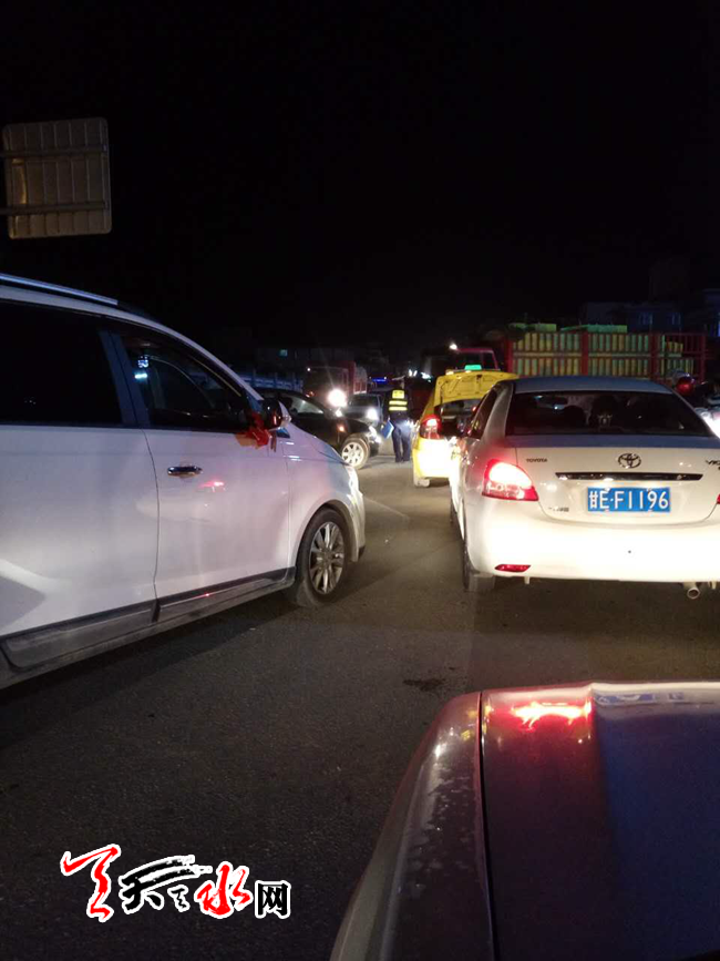 天天天水網(wǎng)2日21時(shí)訊 【記者甄娜】西十里高速路口2日晚一直不通暢,從八時(shí)許開始一直在堵車。