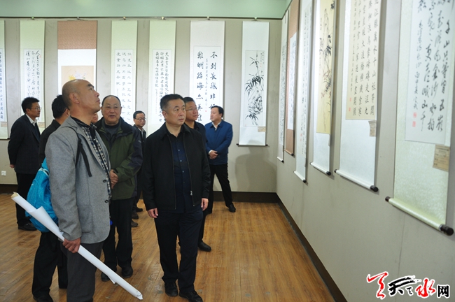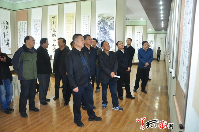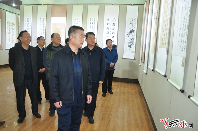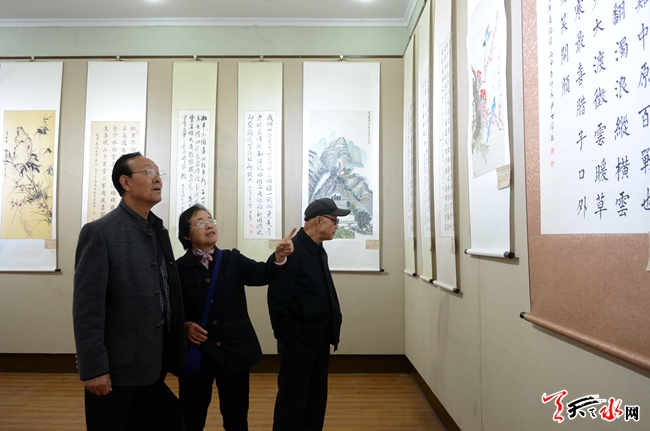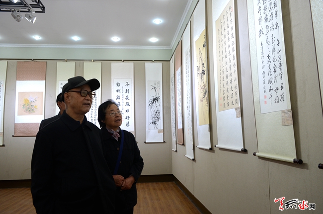 10月24日上午,為期兩天的天水市紀(jì)念紅軍長征勝利80周年老干部書畫展在市文化館開展。此次展覽共征集展出我市離退休老同志精心創(chuàng)作的書畫作品160幅。天水市委常委、市委秘書長蔣曉強(qiáng),天水市副市長張建杰,天水市政協(xié)副主席王振宇參觀展覽。 (天水日報(bào)記者楊璟 實(shí)習(xí)生馬凱 攝)