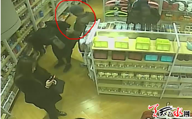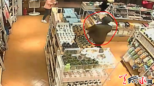 ????(嫌疑人得手后轉(zhuǎn)身離開創(chuàng)美優(yōu)品購物店)