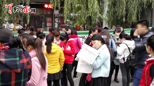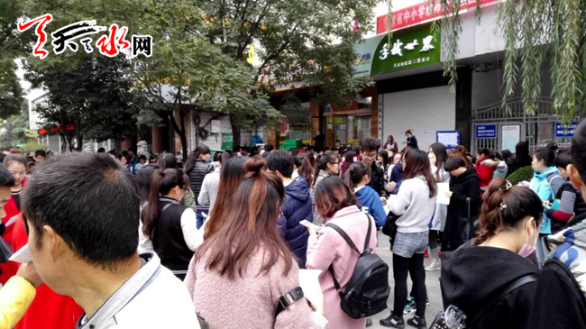 天天天水網(wǎng)11月5日8:25時(shí)訊(記者楊曉斌)2016天水市教師資格證考點(diǎn),秦州區(qū)建二小學(xué)門(mén)前,參加2016年天水市教師資格證考試正在臨陣磨刀,溫習(xí)考試資料或通過(guò)手機(jī)查詢考點(diǎn)。與其它資格考試相比,教師資格證考試的參考人數(shù)最多,其規(guī)模僅次于被國(guó)考的公務(wù)員考試。
