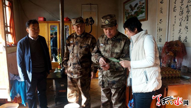 天天天水網(wǎng)訊 11月28日,帶著對(duì)雙聯(lián)點(diǎn)群眾的濃濃關(guān)切之情,天水市委常委、天水軍分區(qū)司令員李建中一行深入聯(lián)系點(diǎn)龍臺(tái)鎮(zhèn)山羊坪村開(kāi)展慰問(wèn)活動(dòng),為困難群眾送去慰問(wèn)品和黨的溫暖。