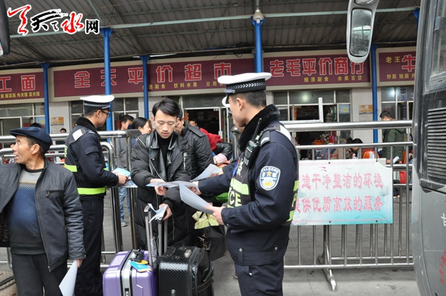 麥積公安分局交警大隊聯(lián)合相關(guān)部門和運輸企業(yè)在天嘉集團(tuán)汽車站站前廣場設(shè)立宣傳點,結(jié)合當(dāng)前嚴(yán)查嚴(yán)懲嚴(yán)重道路交通違法性專項整治工作開展宣傳,倡導(dǎo)全社會一起來關(guān)注、支持和監(jiān)督交通管理工作,自覺遵守交通法律法規(guī),共同承擔(dān)起道路交通安全責(zé)任。
