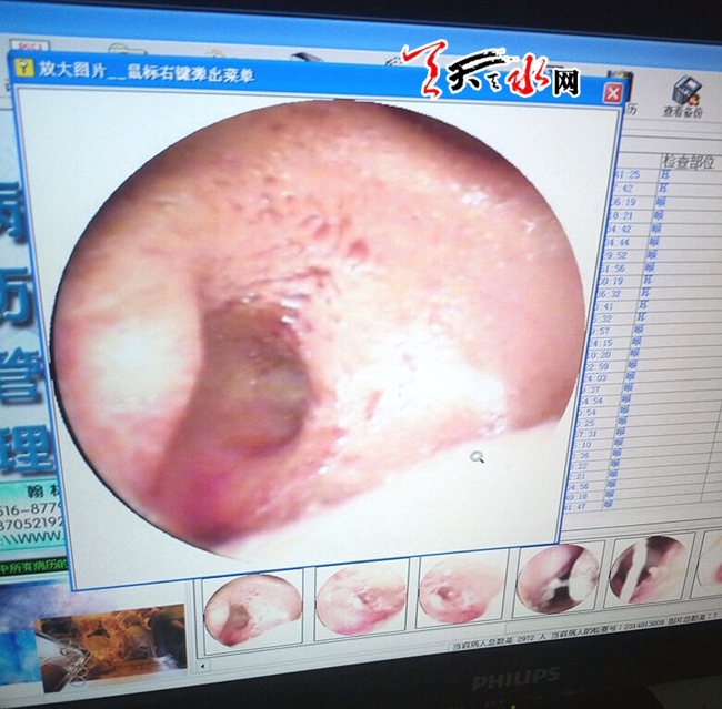 然而讓雷先生和妻子沒有想到的是,11月20日早上,孩子的耳朵竟然流血了。愛子心切的雷先生回憶起當時的場景仍然心有余悸:“我起得早,正在洗手間洗漱時,孩子的媽媽忽然喊我,我走進臥室一看,孩子的枕頭和枕巾上處處是血跡。仔細觀察,原來血是從孩子左耳朵里流出來的,這可嚇壞了我們,便趕緊將孩子送到市第四人民醫(yī)院做檢查。大夫告訴我們,孩子的耳朵內可能是硬物所致,引起發(fā)炎化膿,得住院治療?!?/p>
