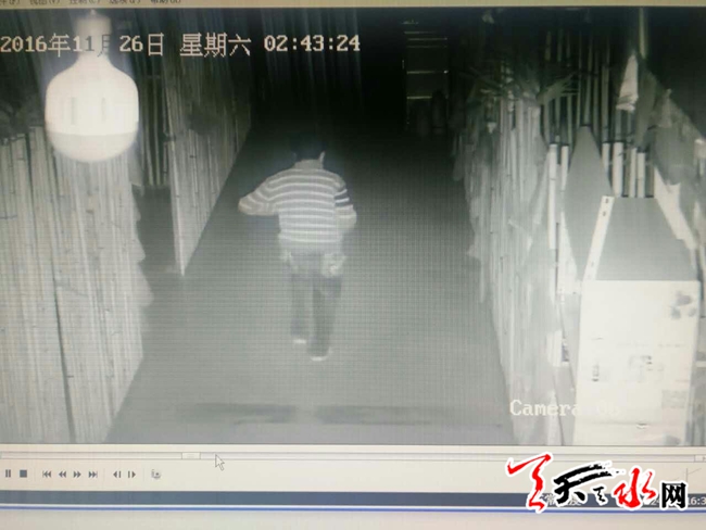 民警通過調(diào)取辦公室的視頻發(fā)現(xiàn),26日凌晨2時(shí)許,有一名年約20歲左右的男子從辦公室的窗戶翻入,作案后盜走財(cái)物,后經(jīng)多方了解發(fā)現(xiàn),該男子是秦州區(qū)大門鎮(zhèn)人,暫住在秦州區(qū)玉泉鎮(zhèn)棗園村。