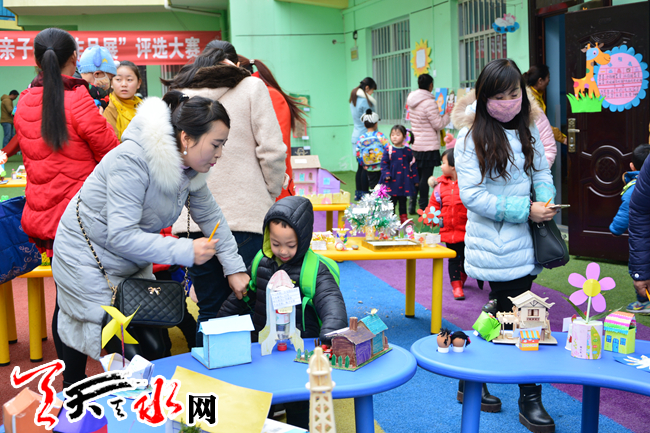 天天天水網(wǎng)訊(記者王曉華)12月19日下午,秦州區(qū)峪河佳寶幼兒園舉辦親子手工作品展,吸引了眾多家長前來參觀。