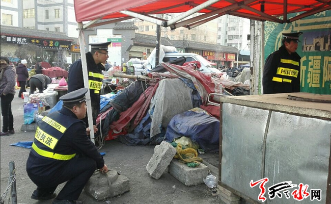 天天天水網(wǎng)22日18時(shí)訊【記者 邵蘭霞】12月22日上午,?秦州區(qū)城市綜合管理局西關(guān)中隊(duì)集中整治堅(jiān)家河花鳥(niǎo)市場(chǎng)占道經(jīng)營(yíng)、店外經(jīng)營(yíng),保持市場(chǎng)道路通暢,還市場(chǎng)周邊經(jīng)營(yíng)戶和廣大市民一個(gè)干凈整潔的經(jīng)營(yíng)和購(gòu)物環(huán)境。